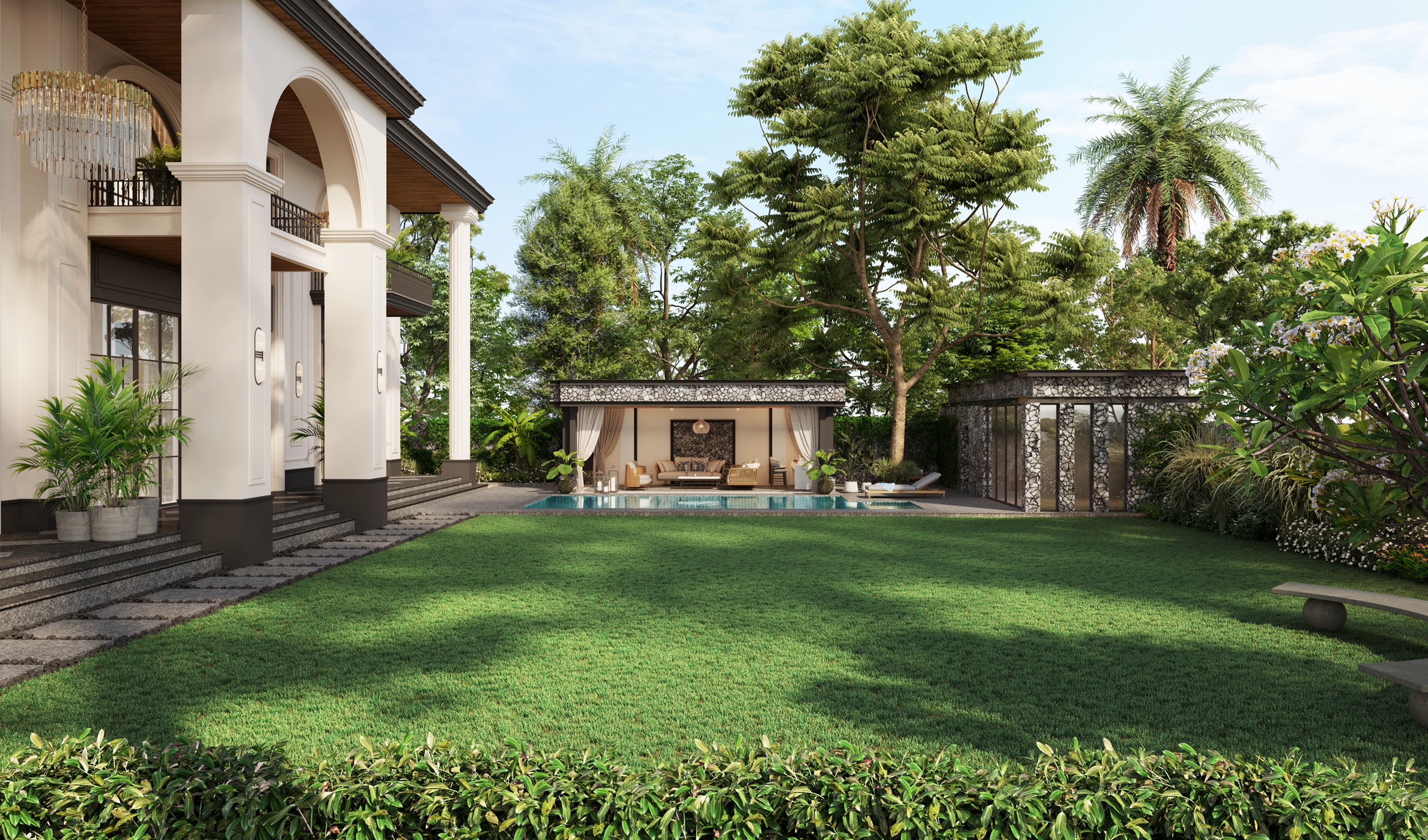 Nestled amidst lush green farmhouses, Avtara Homes presents an exclusive new offering—two bespoke villas designed to embrace the essence of relaxed luxury. Thoughtfully crafted for families, these residences blend classical tropical architecture with modern elegance, creating a timeless yet contemporary living experience. Every element of these villas is designed to soothe the senses. Expansive living spaces open to beautifully landscaped gardens, creating a seamless connection between nature and home. The interiors feature a refined mix of classical and modern elements, offering warmth, sophistication, and effortless comfort.